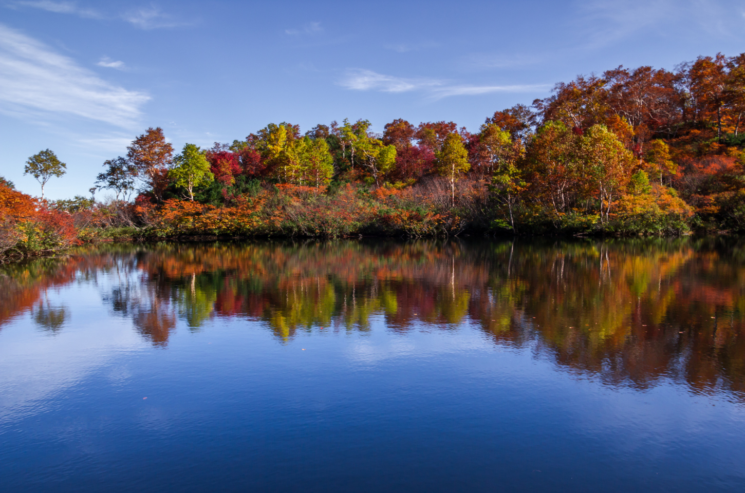 ทะเลสาบโทยะ มีชื่อเสียงในเรื่องความเงียบสงบและวิวภูเขาไฟที่ล้อมรอบ แต่ในฤดูใบไม้เปลี่ยนสี ความงามจะเพิ่มขึ้นอีกระดับ — ใบไม้แดง เหลือง และส้มจากต้นไม้รอบทะเลสาบจะสะท้อนลงผิวน้ำใสราวกระจก พร้อมฉากหลังของภูเขาไฟอุสุซังและโชวะชินซัง